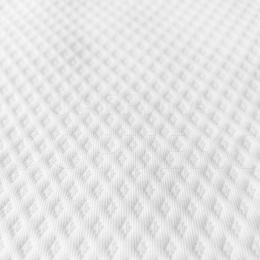 Трикотажное полотно ST 010-1-0-280 FS белого цвета с геометрическим узором в цвет полотна. Трикотаж представлен в плотности 280 гр/м2 и в ширине 220 см.